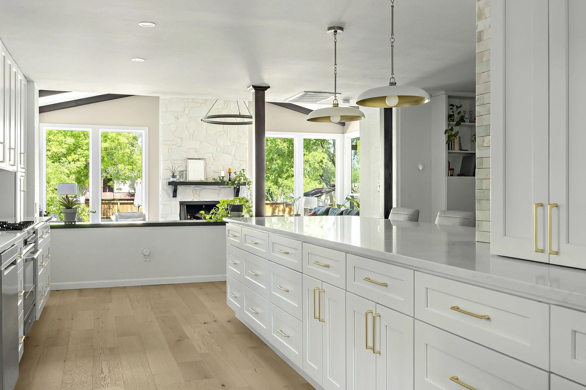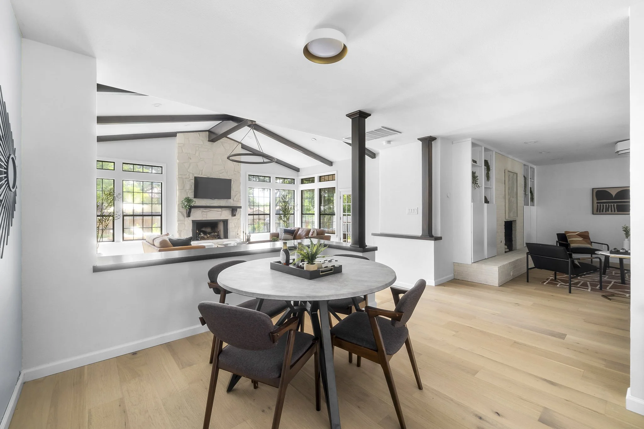 Modern traditional home in Great Hills, Northwest Austin. 6 bedrooms, 3.5 bathrooms, 3 separate living spaces, two gas fireplaces, pool with generous outdoor living area.